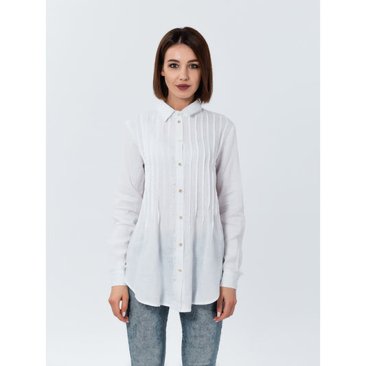 Linen Shirt - White with Tucks - Stonewashed - Luxury Thin Linen