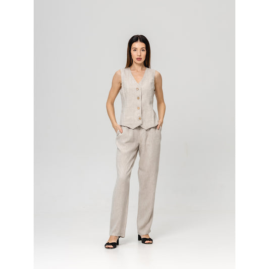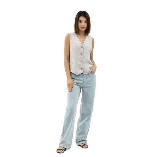 Linen Vest - Light Natural - Stonewashed - Meduim Thick Linen