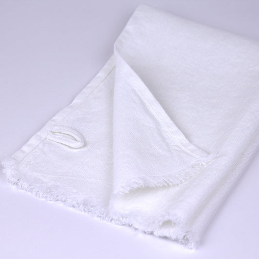 Linen Guest Towel - Stonewashed - Optic White with Frayed Edges - Luxury Thick Linen