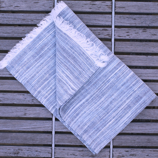 Linen Guest Towel - Stonewashed - Heather Grey with White Stripes and Frayed Edges - Luxury Thick Linen