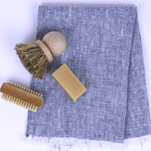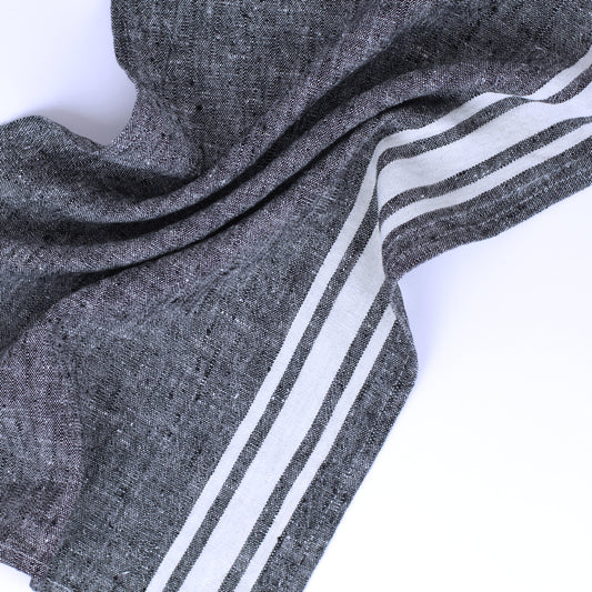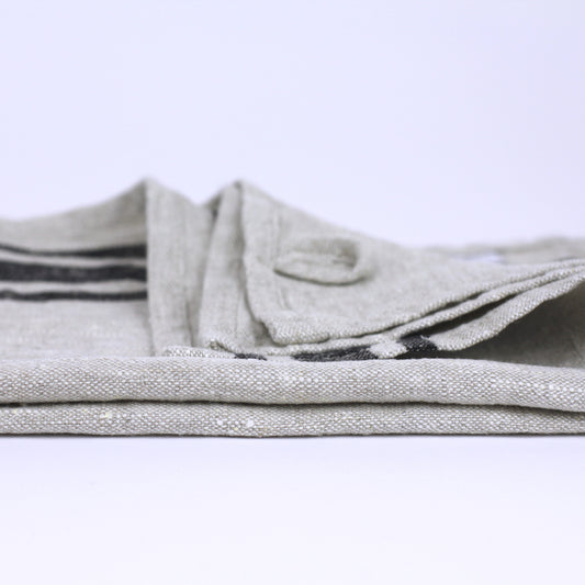 Linen Guest Towel - Stonewashed - Grey with Black Stripes - Luxury Thick Linen