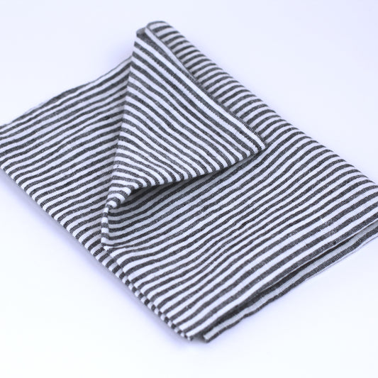 Linen Hand Towel - Stonewashed - Black White Thin Stripes - Thin Linen