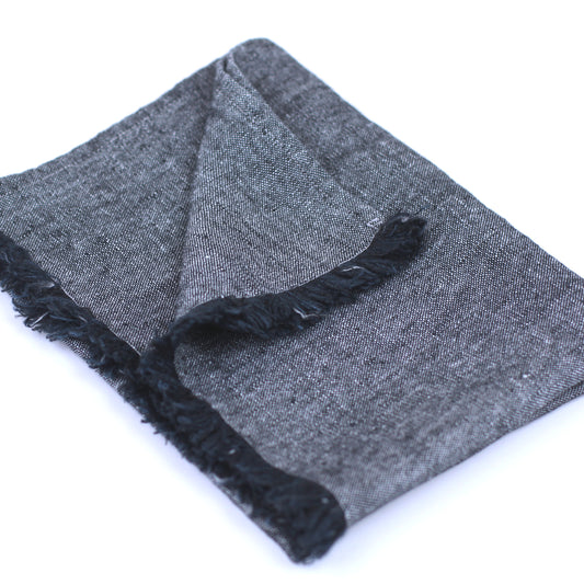 Linen Hand Towel - Stonewashed - Black with Frayed Edges - Luxury Thick Linen