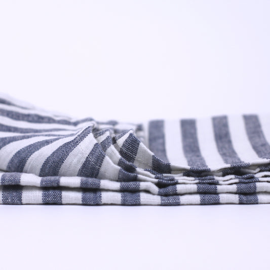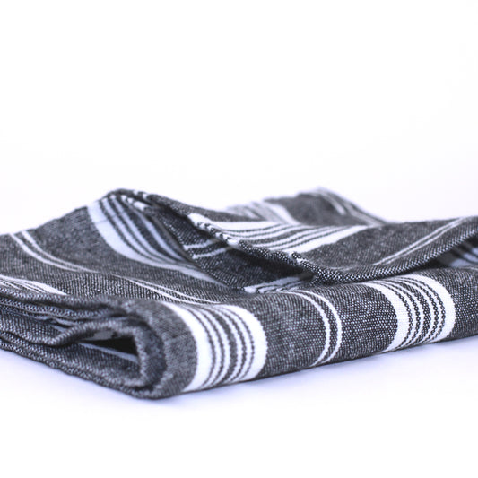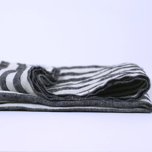 Linen Hand Towel - Stonewashed - Grey with Black Stripes - Luxury Thick Linen