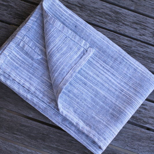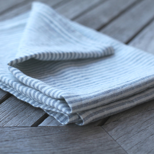 Linen Hand Towel - Stonewashed - Heather Light Blue with White Stripes - Luxury Thick Linen