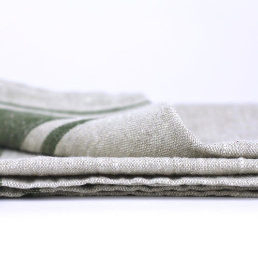 Linen Hand Towel - Stonewashed - Grey with Forest Green Stripes - Luxury Thick Linen