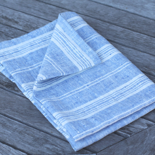 Linen Hand Towel - Stonewashed - Blue with White Stripes - Luxury Thick Linen