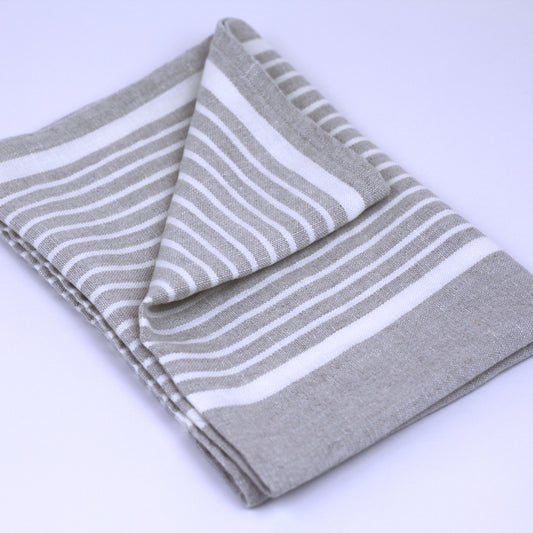 Linen Hand Towel - Stonewashed - Light Natural with White Stripes - Luxury Thick Linen