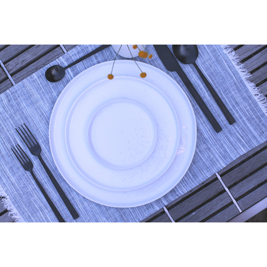 Linen Placemat - Stonewashed - Black with White Stripes - Luxury Thick Linen