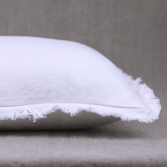 Linen Pillow Cover - Lumbar - White with Frayed Edges - 12 x 20 - Stonewashed - Luxury Thick Linen
