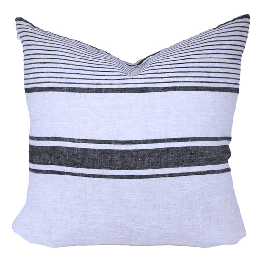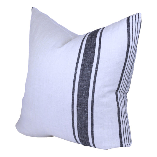 Linen Pillow Cover - Sham - Antique White with Black Pinstripes 2 - 22 x 22 - Stonewashed - Luxury Thick Linen