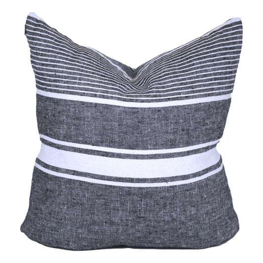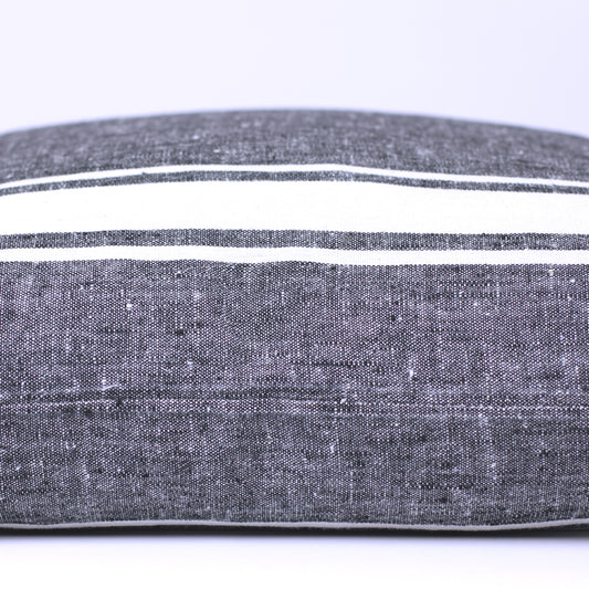 Linen Pillow Cover - Sham - Heather Black with Light Natural Stripes - 24 x 24 - Stonewashed - Luxury Thick Linen