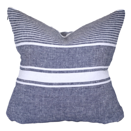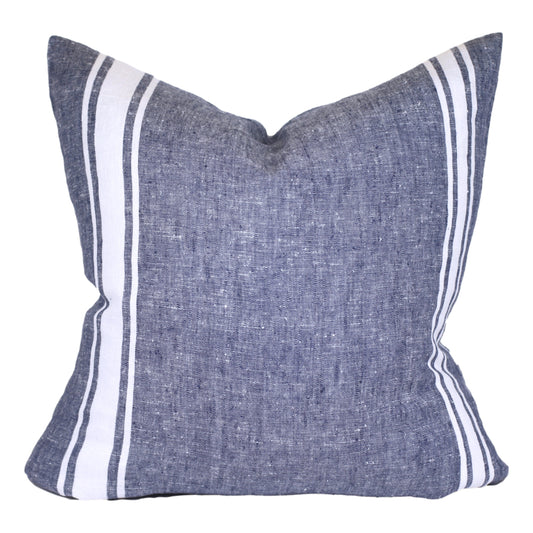 Linen Pillow Cover - Sham - Blue with Basic White Stripes - 22 x 22 - Stonewashed - Luxury Thick Linen
