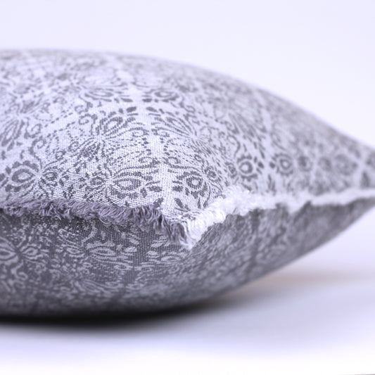 Linen Pillow Cover - Sham - Grey Jacquard - 22 x 22 - Stonewashed - Textured - Frayed Edges - Double-sided - Grey and Charcoal Colors
