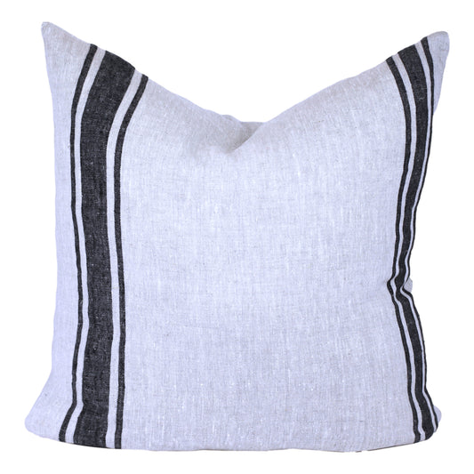 Linen Pillow Cover - Sham - Grey with Basic Black Stripes - 22 x 22 - Stonewashed - Luxury Thick Linen