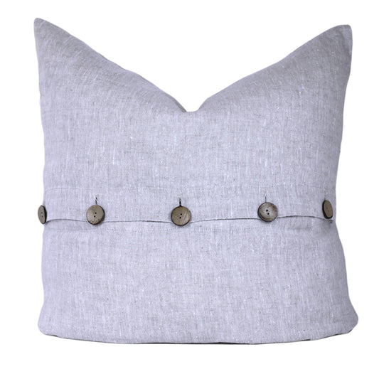 Linen Pillow Cover - Sham - Light Natural with Buttons - 24 x 24 - Stonewashed - Luxury Thick Linen