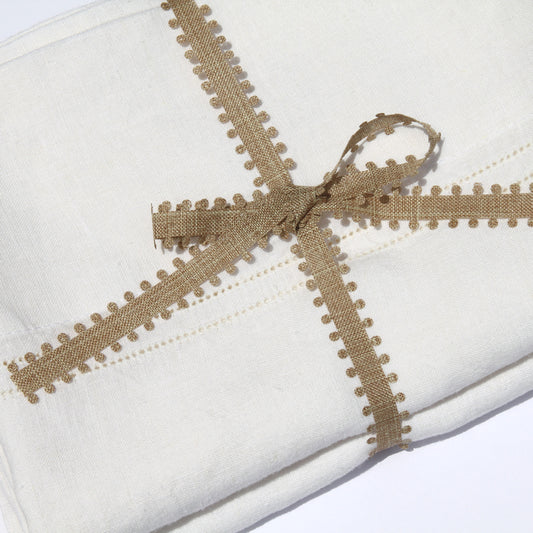 Linen Pillowcases Set of 2 - Queen - White with Dot Hemstitch - Stonewashed