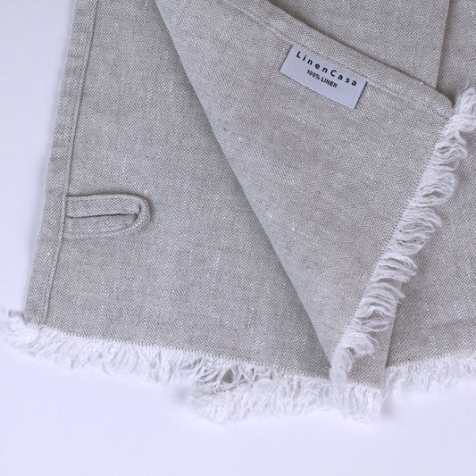 Linen Guest Towel - Stonewashed - Light Natural with Frayed Edges - Luxury Thick Linen