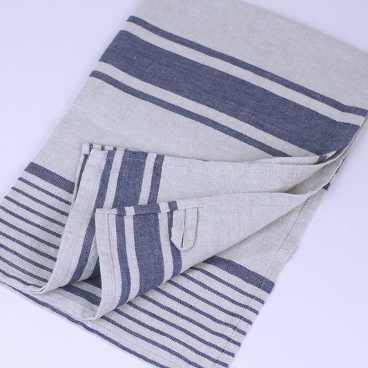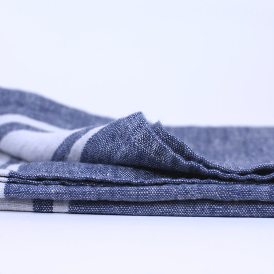 Linen Hand Towel - Stonewashed - Blue with White Stripes - Luxury Thick Linen