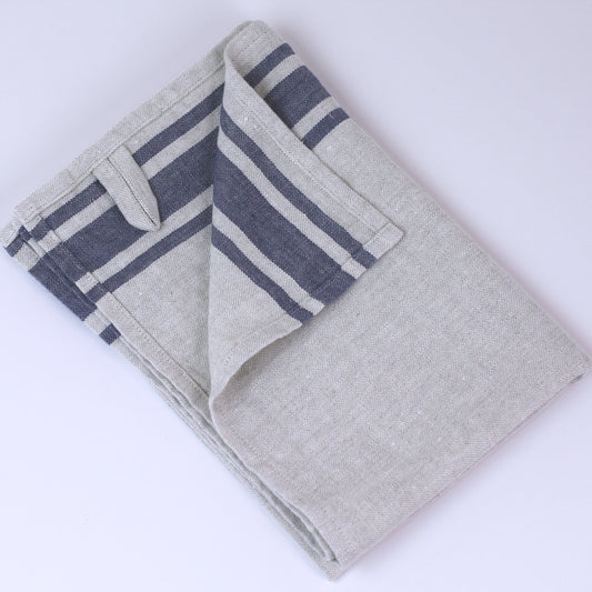 Linen Hand Towel - Stonewashed - Grey with Blue Stripes - Luxury Thick Linen