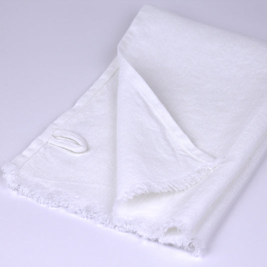 • Linen Guest Towel - Stonewashed - White with Frayed Edges - Luxury Thick Linen