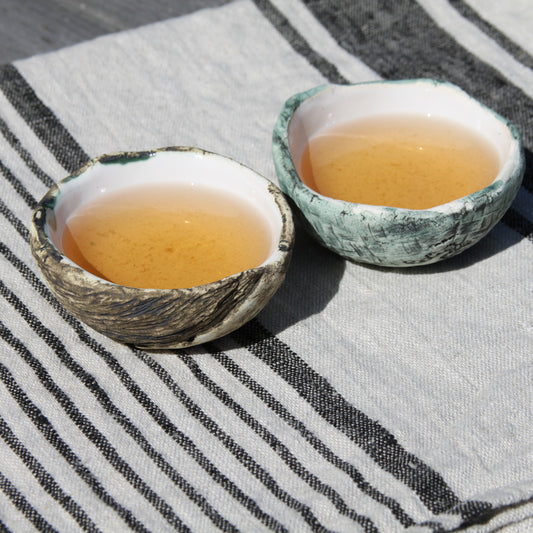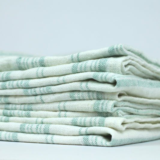 Linen Hand Towel - Stonewashed - White with Light Green Stripes - Luxury Thick Linen