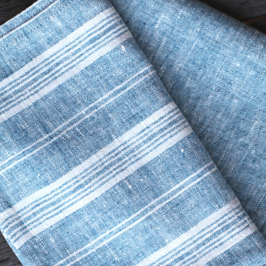 Linen Hand Towel - Stonewashed - Heather Light Blue with White Stripes - Luxury Thick Linen
