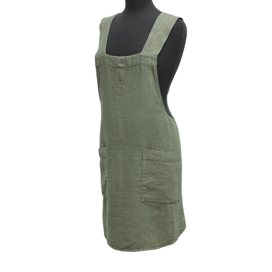 Linen Apron - A-Line - Cross Back - Two Pockets - Olive - Japanese-style - Stonewashed - Thick Linen (Copy)