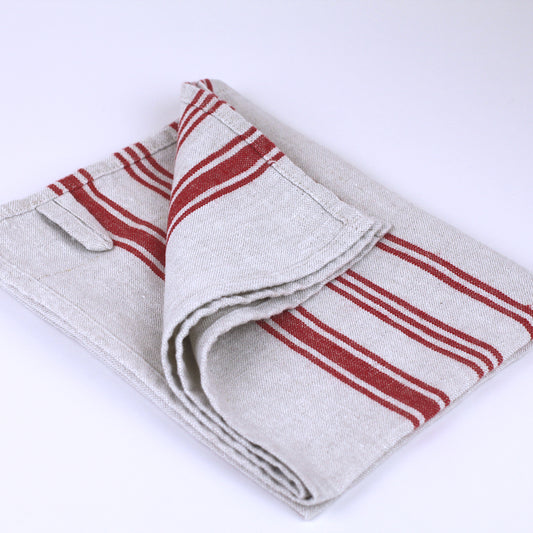 Linen Hand Towel - Stonewashed - Light Natural with Red Pinstripes - Luxury Thick Linen