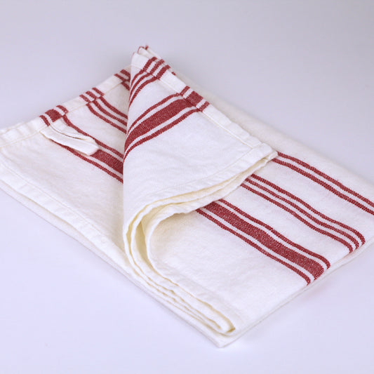 Linen Hand Towel - Stonewashed - White with Red Pinstripes - Luxury Thick Linen