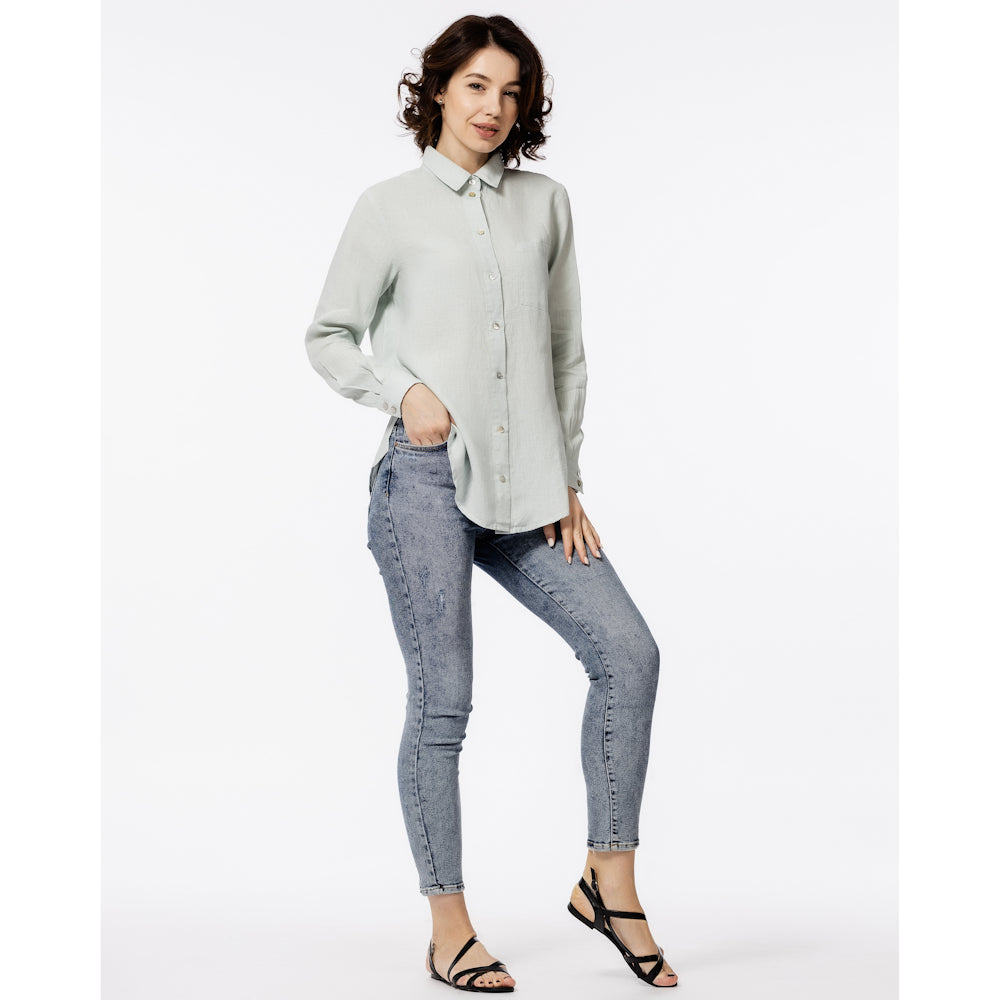 Linen Shirt - Ice Blue - Stonewashed - Luxury Thin Linen