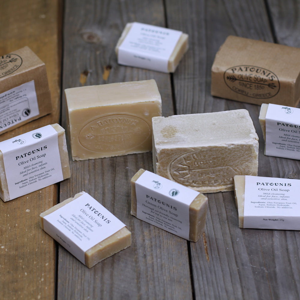 Our Green Olive Soap is made using only the basic raw materials of traditional soap manufacture: NO additives, NO fragrances, just 100% natural ingredients: olive husk oil, caustic soda (sodium hydroxide), natural sea salt, and water.Ā