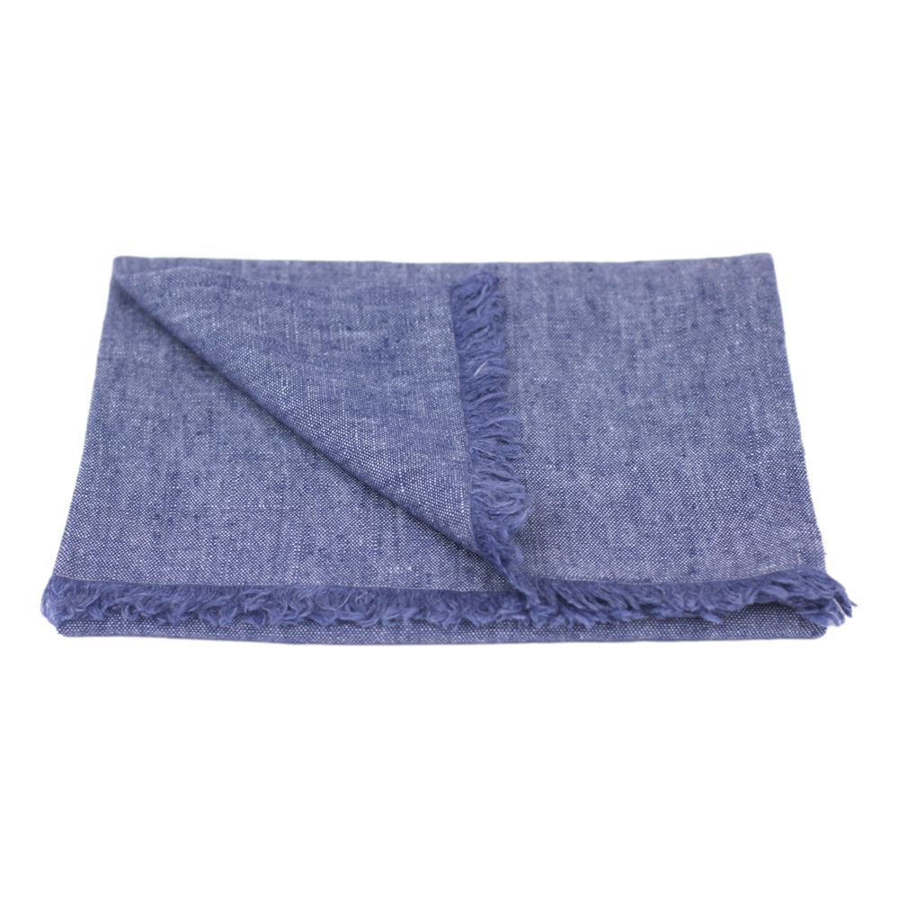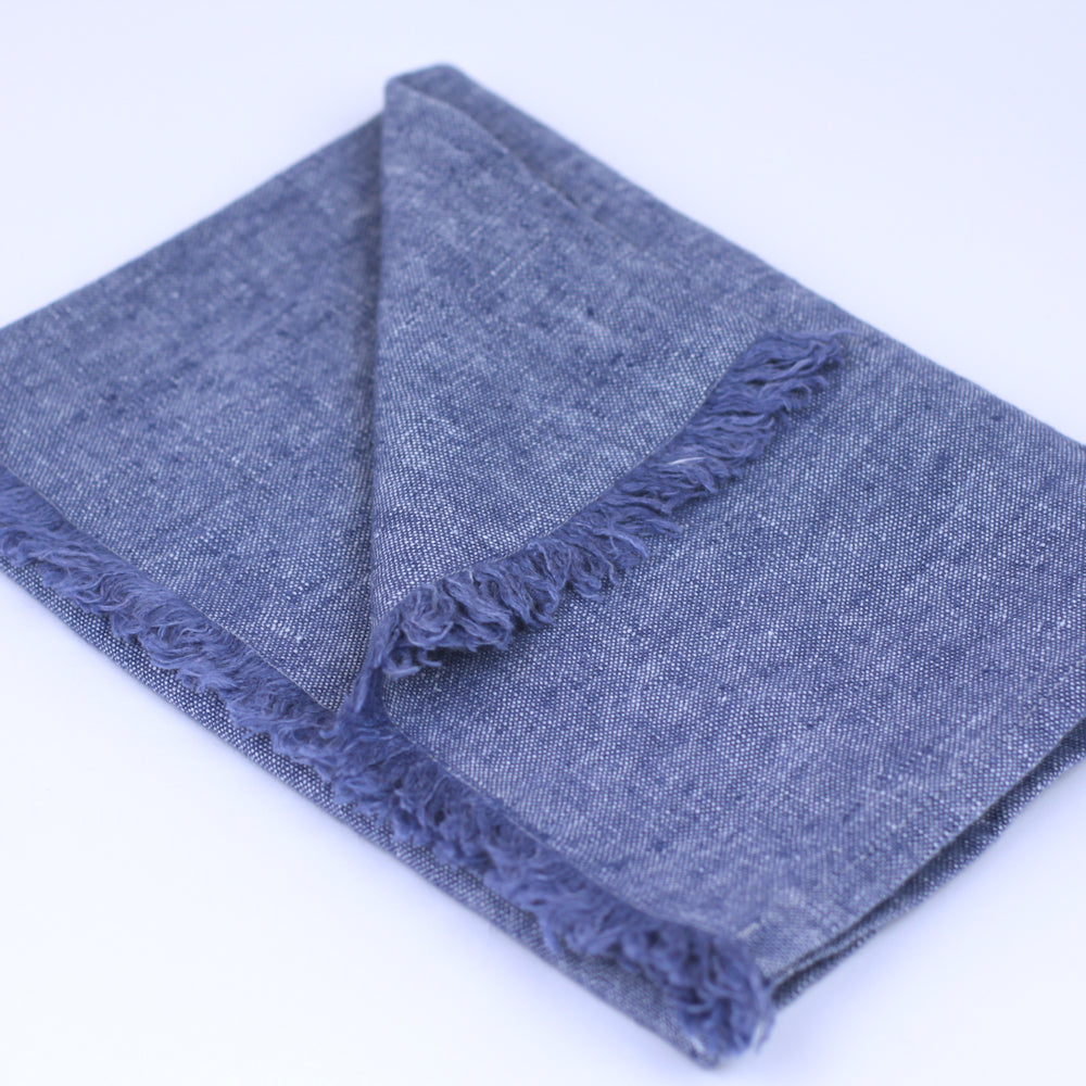 Linen Hand Towel - Stonewashed - Blue with Frayed Edges - Luxury Thick Linen
