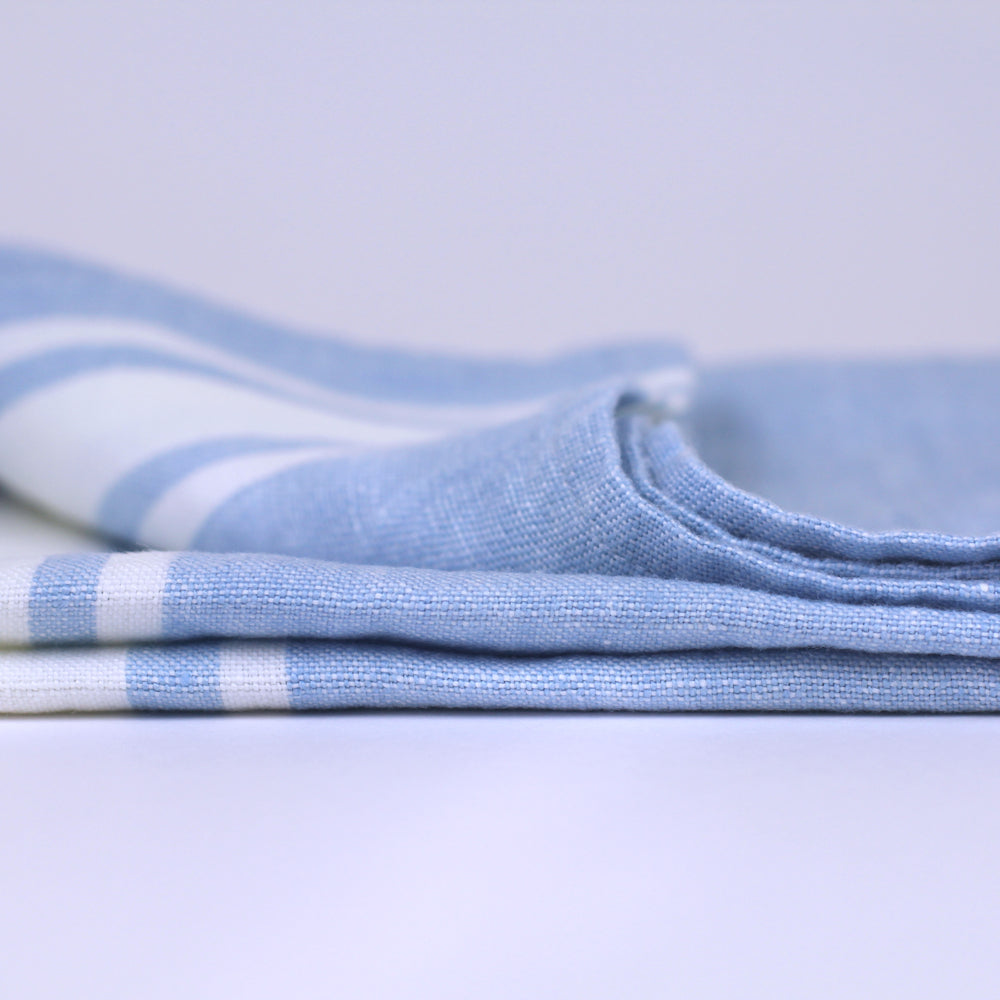Linen Hand Towel - Stonewashed - Light Blue with White Stripes - Luxury Thick Linen
