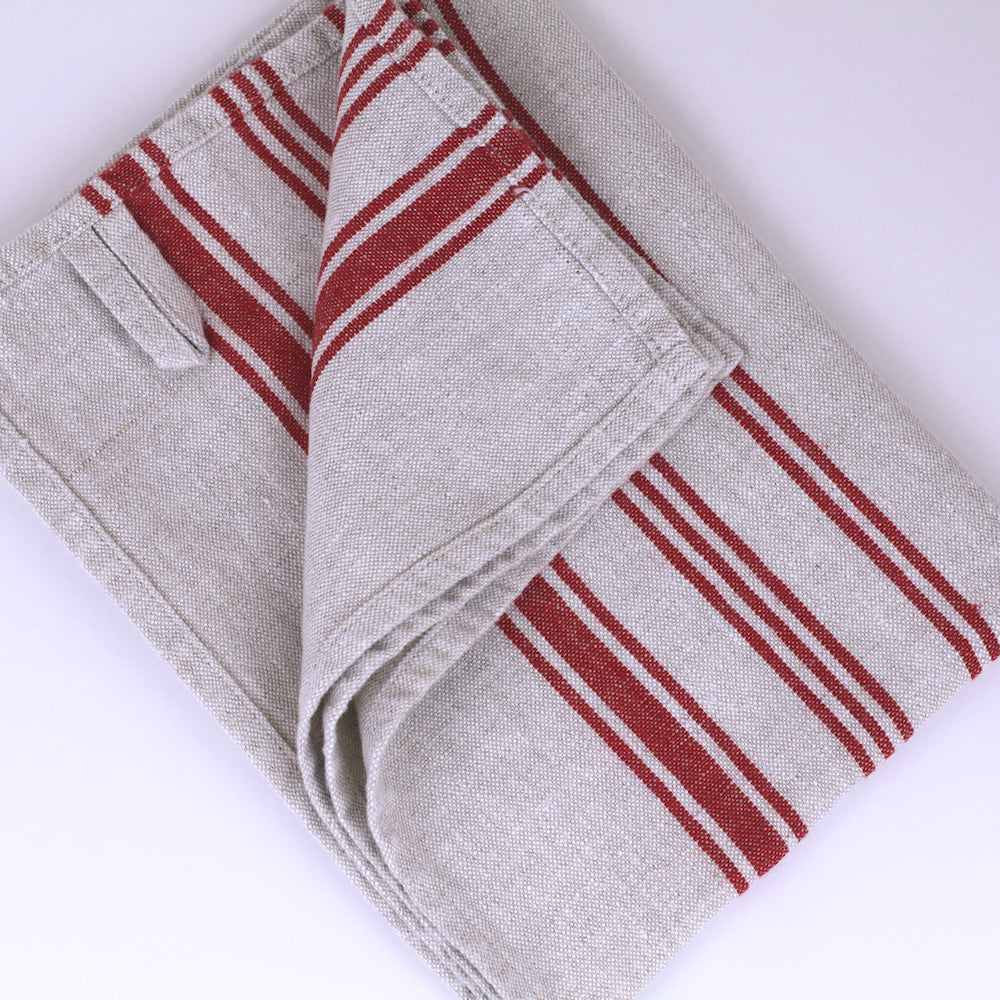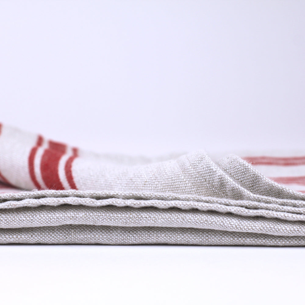 Linen Hand Towel - Stonewashed - Light Natural with Red Stripes 2 - Luxury Thick Linen