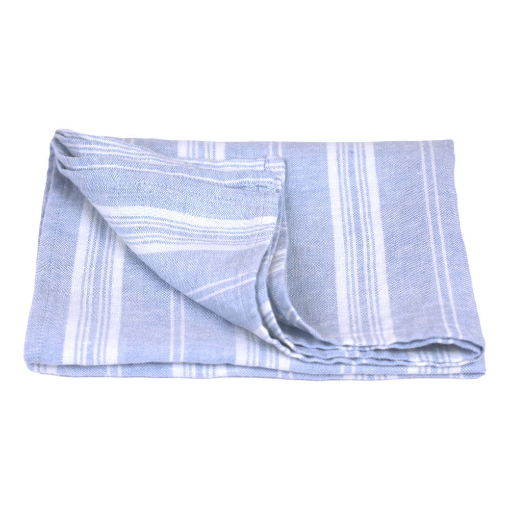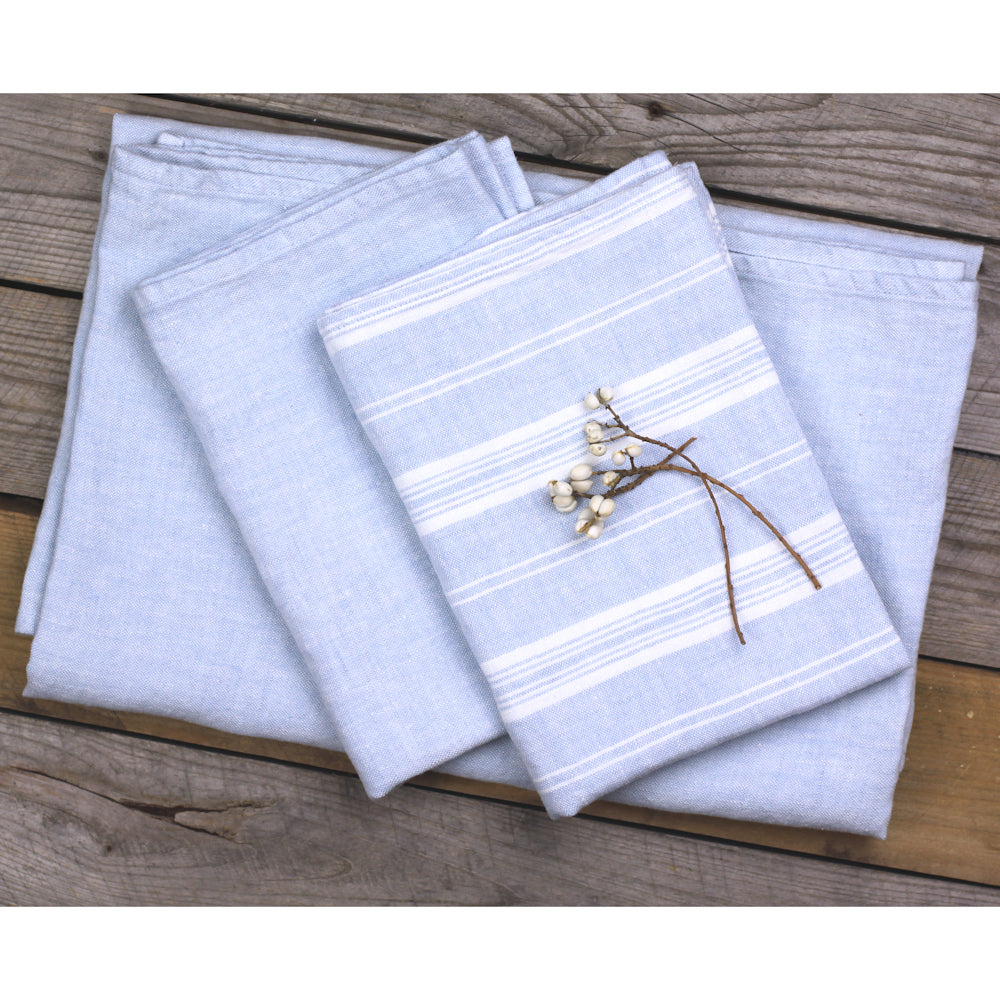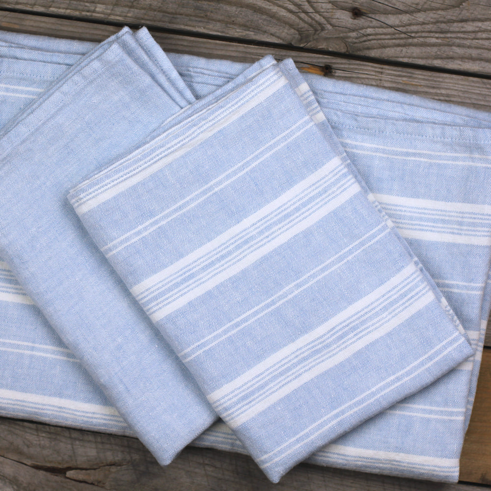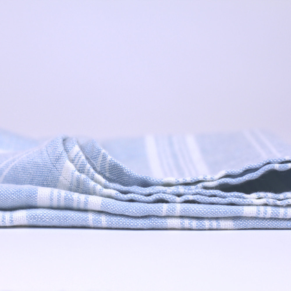 Linen Hand Towel - Stonewashed - Sky Blue with White Stripes 3 - Luxury Thick Linen
