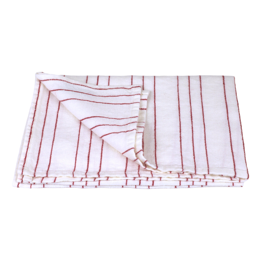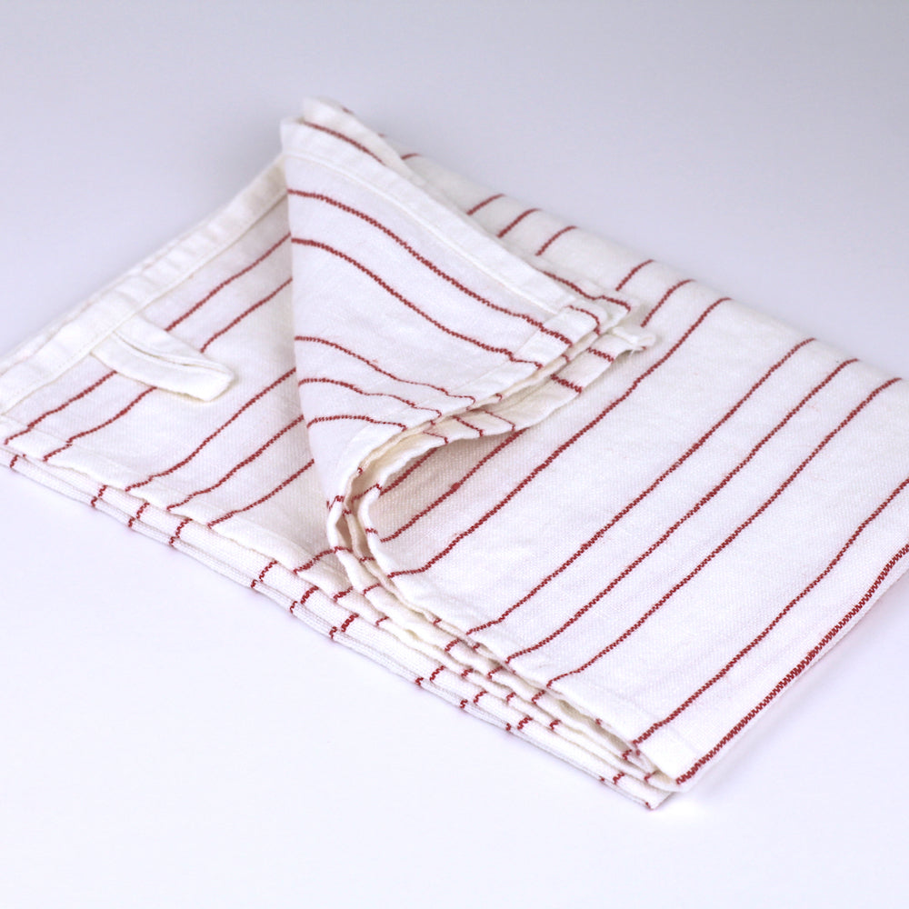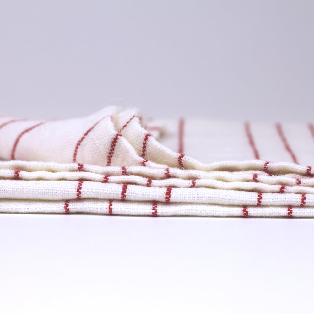 Linen Hand Towel - Stonewashed - White with Red Pinstripes - Luxury Thick Linen