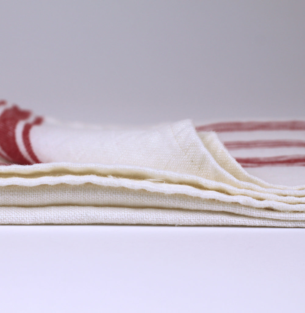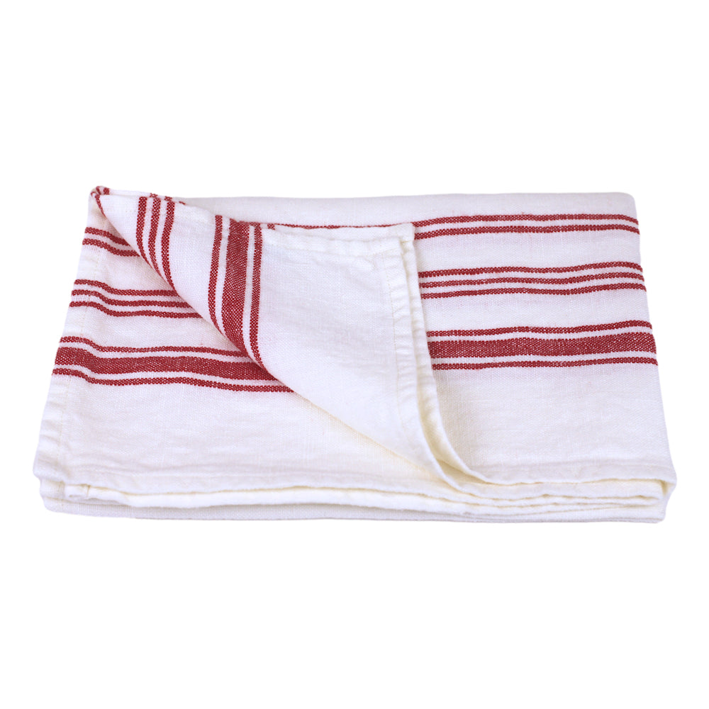 Linen Hand Towel - Stonewashed - White with Red Stripes 2 - Luxury Thick Linen