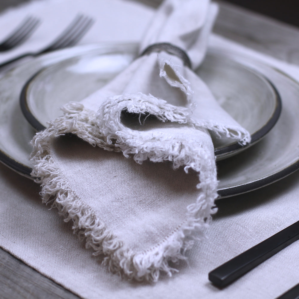 Linen Napkin - Stonewashed - Light Natural with Frayed Edges - Luxury Thick Linen