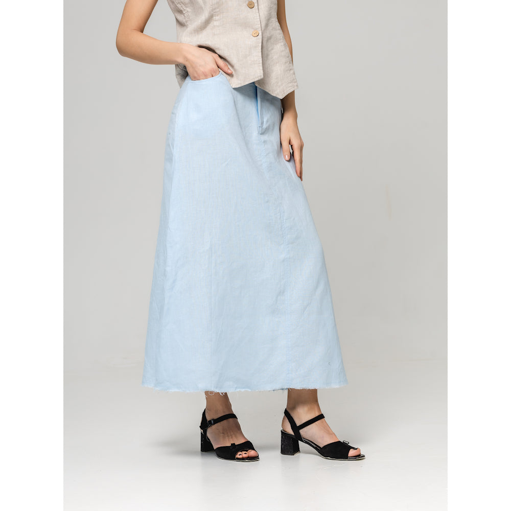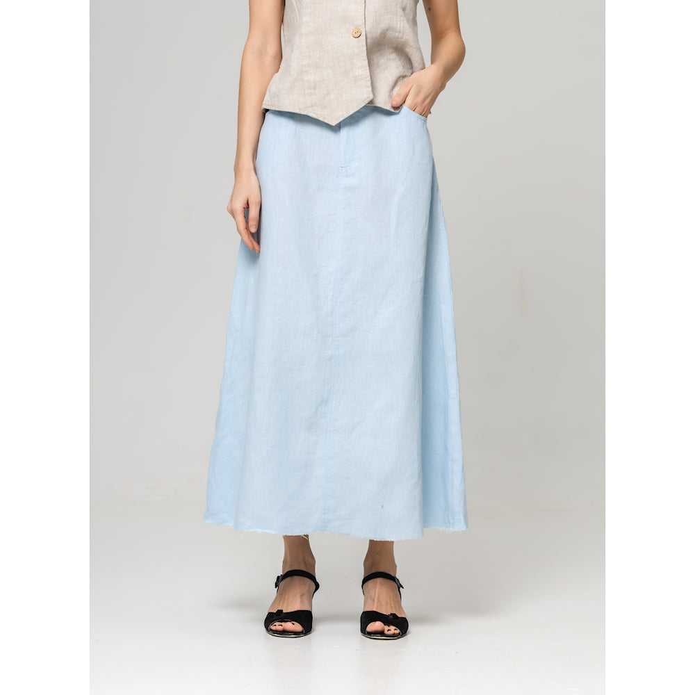 Linen Skirt - Light Blue - Stonewashed - Luxury Medium Thick Linen