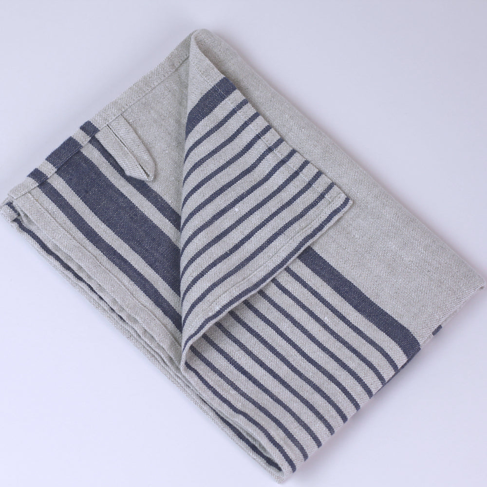 Linen Hand Towel - Stonewashed - Grey with Blue Stripes 2 - Luxury Thick Linen